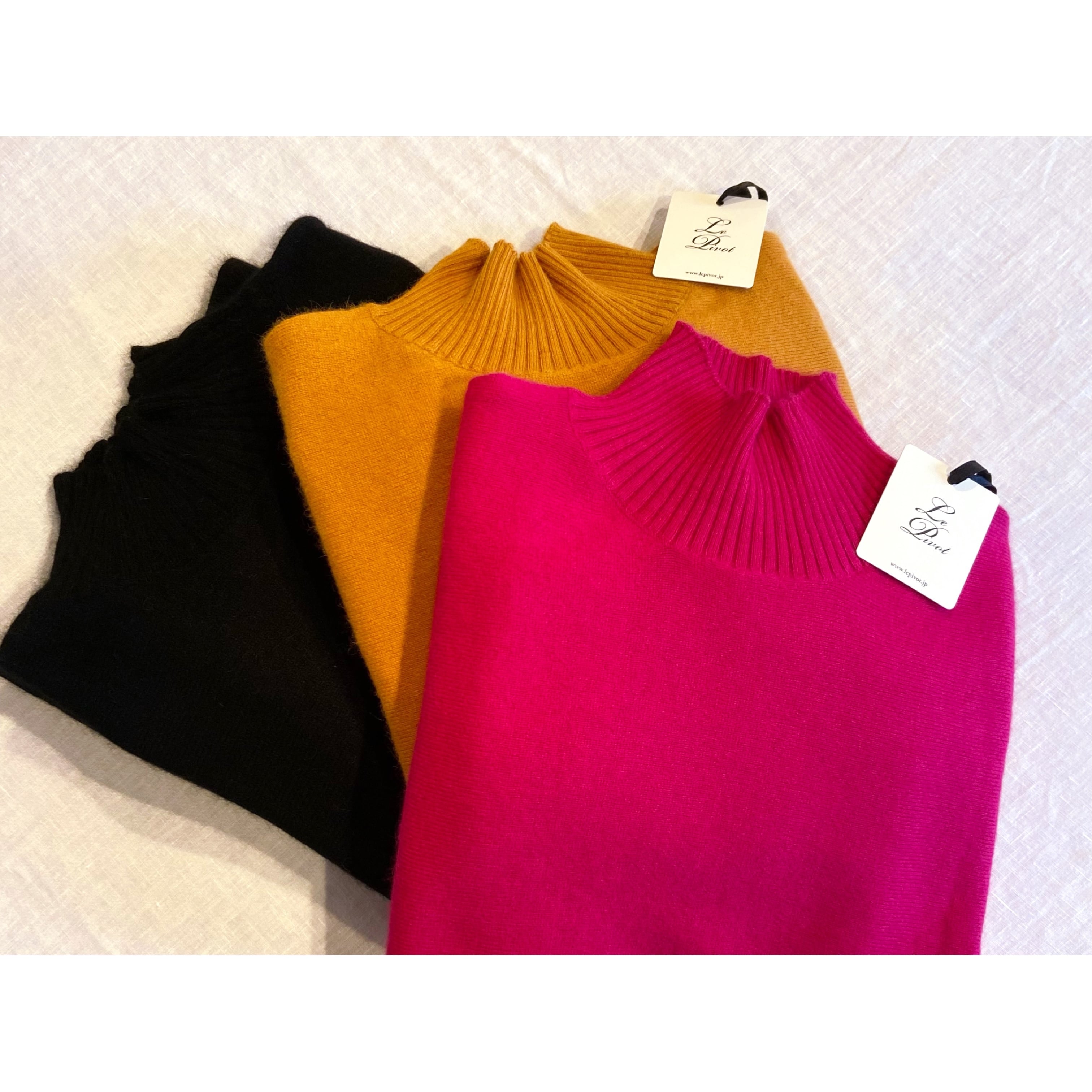 アンゴラとラクーンのふわふわの糸で編まれたニットは