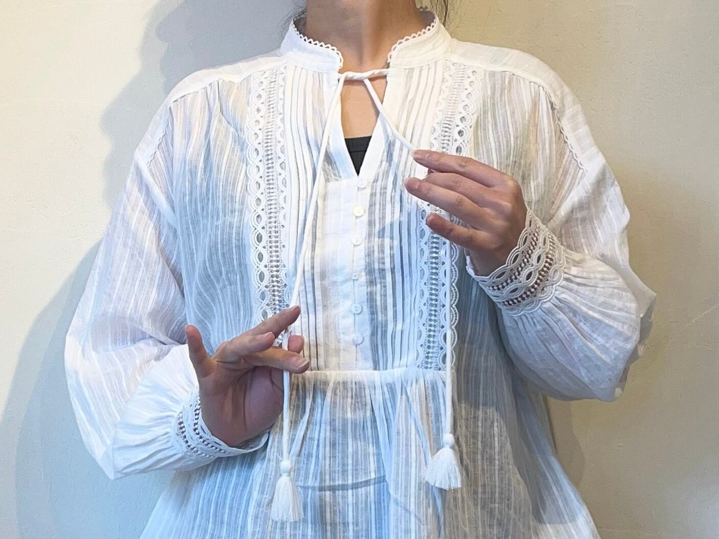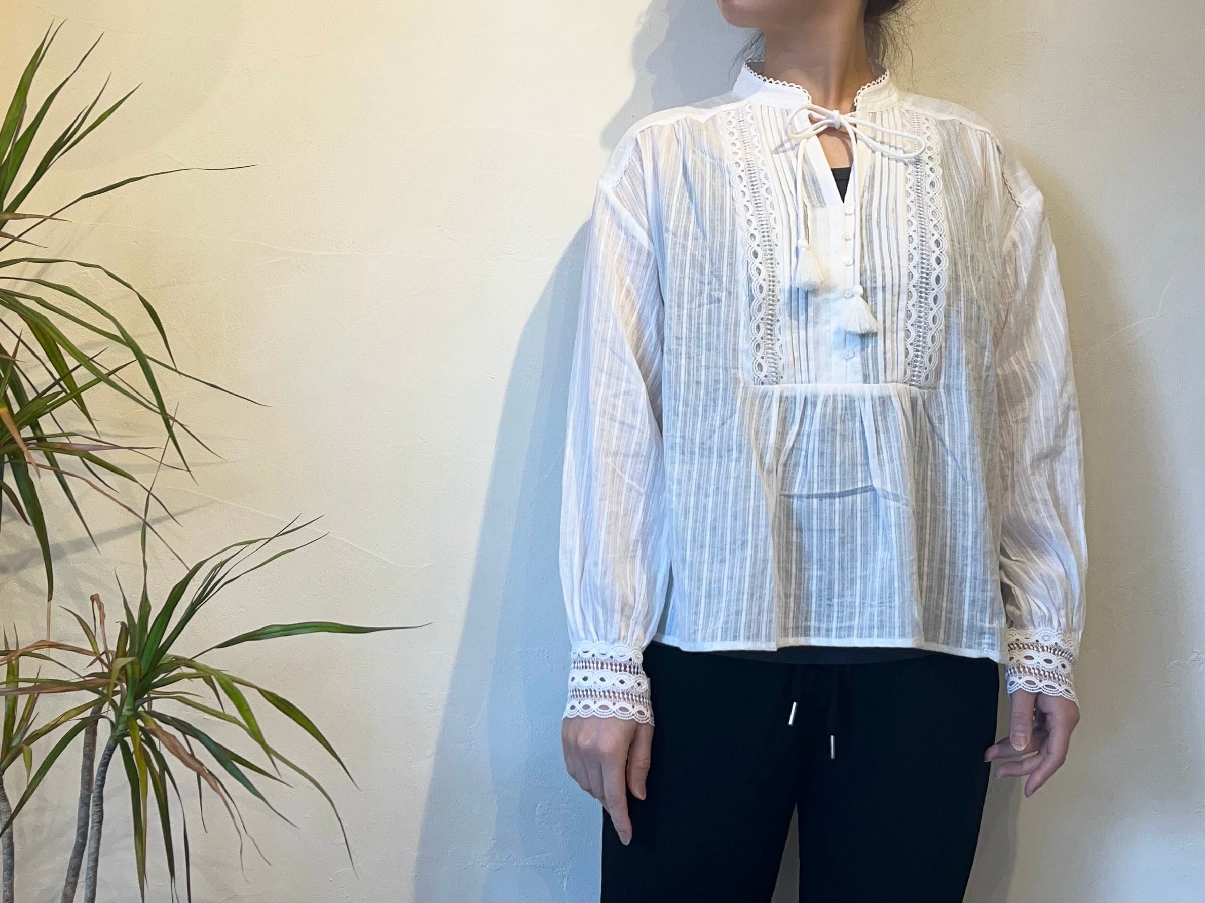 SUNCOO PARIS レースピンタックブラウス